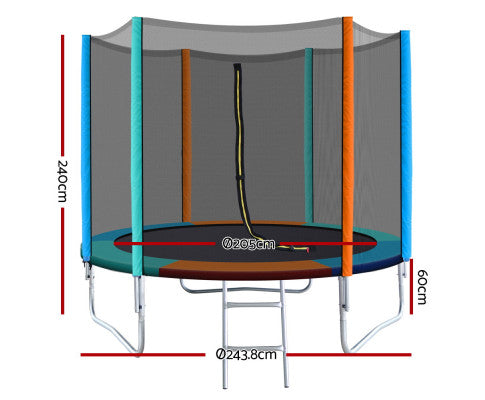 8FT Trampoline Round Trampolines Kids Safety Net Enclosure Pad Outdoor Gift Multi-coloured