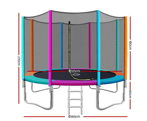 12FT Trampoline Round Trampolines Kids Safety Net Enclosure Pad Outdoor Gift Multi-coloured