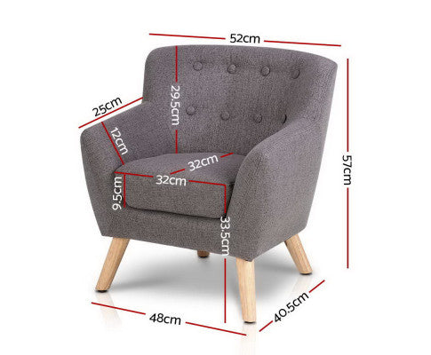 Keezi Kids Sofa Armchair Grey Linen Lounge Nordic French Couch Children Room