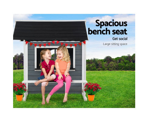 Kids Cubby House Outdoor Pretend Play Bench Wooden Playhouse Childrens